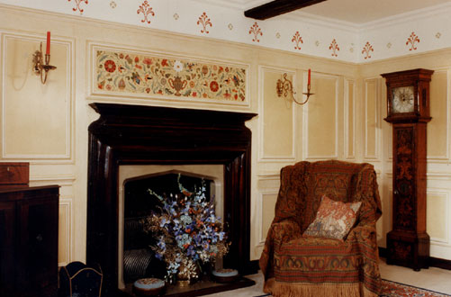An antiqued and crackle-glazed panel, based on a 17th Century woodcut.