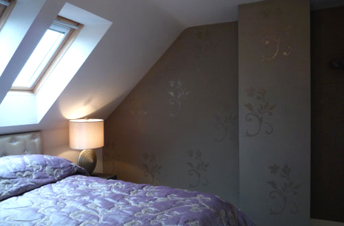 Designs painted in sparkle varnish on mocha-coloured walls.